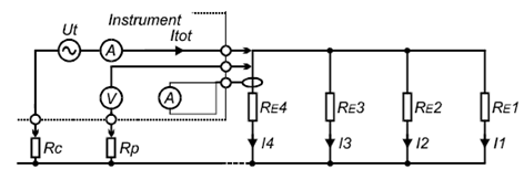 測量結果=(RE1-RE4接地系統總的接地電阻)+(RE5-REn輔助接地系統接地電阻)